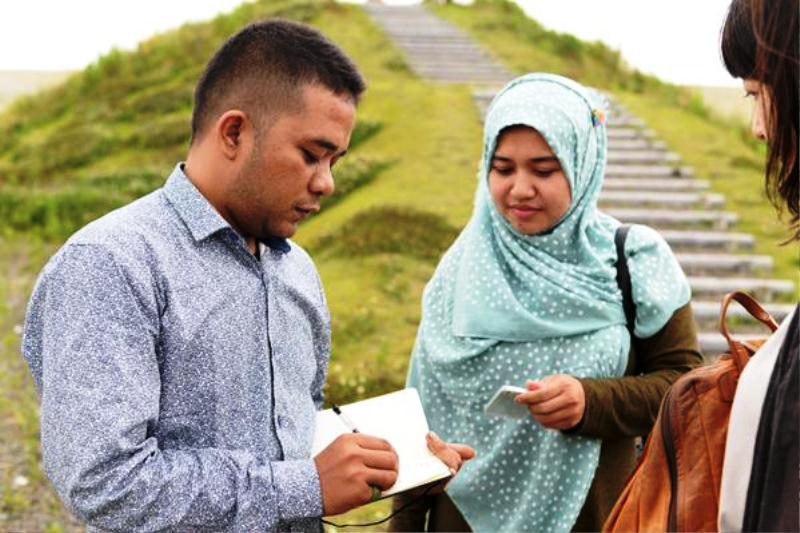 Sdr. Uun Fajaruna dan Sdri. Citra Alfia (Community Business) dari Aceh sedang belajar teknik Stitching/penyulaman di Kota Higashi Matsushima, Jepang. Ini merupakan salah satu kegiatan yang dilakukan oleh Community Business selama berada di Kota Higashi Matsushima Jepang. Dimana harapannya setelah mereka kembali dari Jepang nanti, Program ini akan di sosialisasikan ke masyarakat serta dapat juga mempromosikan produk kerajinan Aceh lainnya melalui Stitching program.