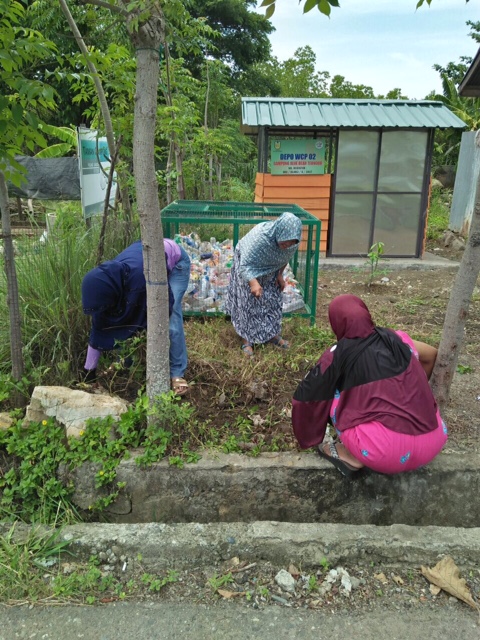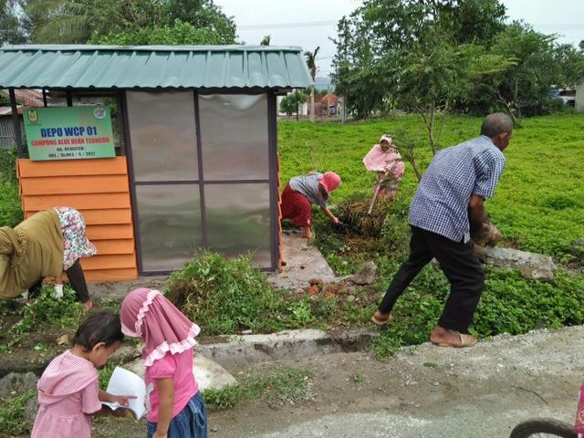 Masyarakat Gampong Alue Deah Teungoh membersihkan area di titik Waste Collecting Point yang berada di area lingkungan rumah masing – masing.