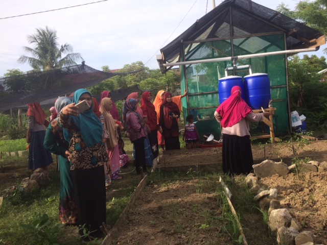 Workshop ini di fasilitasi oleh Saudari Yusrida Arnita (DLHK3) dan Mahrunnisa (DP2KP) selaku fasilitator, selain melakukan diskusi, peserta workshop juga diajak untuk melihat kebun Gampong secara langsung.