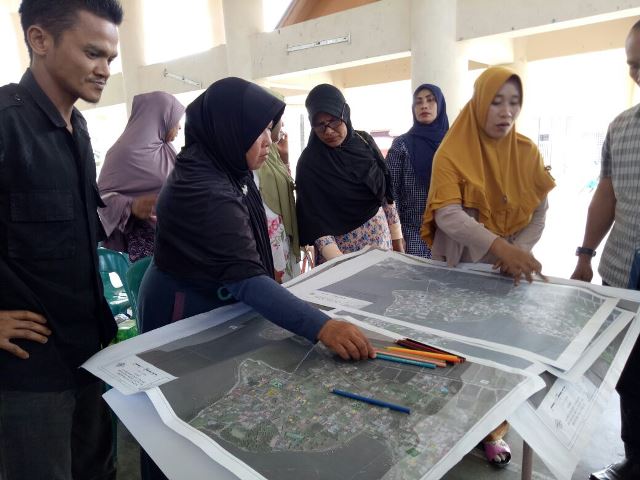 Selain itu, Sesi workshop juga diisi dengan melakukan update Peta Kerentanan, Risiko dan Kapasitas (VCA) yang di miliki oleh Gampong. Peta juga di serahkan ke Kepala Desa Gampong Alue Deah Teungoh Bapak Ridwan oleh Bapak Nizam, dengan tujuan agar peta tersebut dapat di sosialisasikan kepada Aparatur desa untuk di perbaharui jika ada informasi yang kurang.
